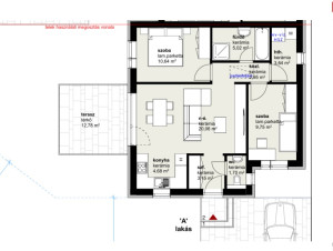 -A ház hasznos alapterület 67.98m2, nettó lakóterülete 61.57m2 + 12.78m2 terasz. (a terasz fele beleszámolt a hasznos alapterületbe).