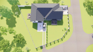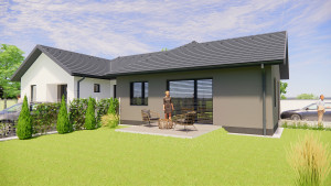 -A ház 30-as porotherm rendszerű téglából készül 15 cm-es homlokzati szigeteléssel. Aljzatban 13 cm hőszigetelés kerül, födémbe 30 cm hőszigetelés kerül beépítésre. Tetőfedés cseréppel történik.
