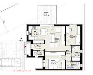 -A kis forgalmú utcában épülő ikerház egy 617m2-es telekre épül. Önálló bejárattal kerül átadásra mindkét lakórész, nincs közös telekrész. Az alaprajzon látható „B” jelű ikerházi lakáshoz 324m2 telek tartozik.