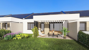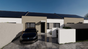 Mosonmagyaróvár fiatal kertvárosi részén új sorház jellegű építéssel, családi házakat kínálunk. A zárt sorú beépítés 4 db, önálló házat fog egybe.