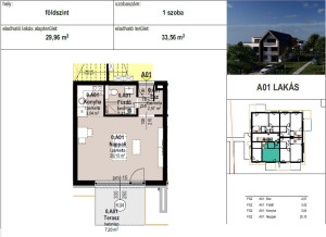 -A lakás hasznos alapterülete 33.56m2, lakótere 29.96m2 + terasz 7.2m2. A lakáshoz lekerített, 30m2-es kerthasználat tartozik. A fűnyírásról kertész gondoskodik.