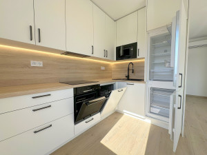 -A konyhabútor minden géppel felszerelt (kombi hűtő, mosogatógép, mikró, sütő, INDUKCIÓS főzőlap, páraelszívó). A gépek Bosch márkájúak. A csaptelep flexibilis, kihúzható a maximális kényelem biztosítására.