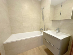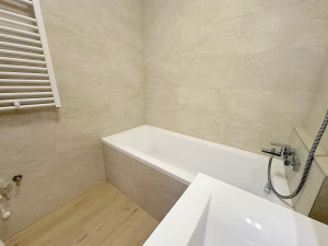 - A lakáson belül magas minőségű anyagokkal történt a befejezés. A padlón mindenhol fa hatású járólap burkoltak készültek, ami tartós és könnyen tisztán tartható. A wc és a fürdő plafonig csempézett, fürdőkáddal készült. Mosdók, csapok is minőségi termékek.