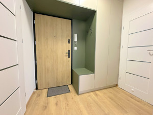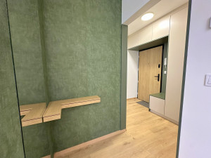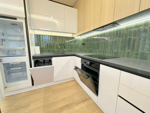 -A lakás és a teljes berendezés új. A konyhabútorban beépített konyhagépek lettek elhelyezve, továbbá magas étkező asztal és 2 bárszék is van. Az előszobabútorban is sok minden elfér.