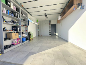 -Külső részen: öntöző rendszer (fúrt kút a garázsban), teljes parkosítás gyepszőnyeggel, díszkővel, zárt kerítés, automata kapu, kamerás kaputelefonnal, stb.