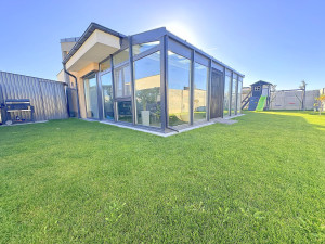 -A ház egyik legjobb tulajdonsága a kiváló elosztás, amely rendkívül élhetővé teszi a tereket. Teljes beépített nettó terület 147m2, amely tartalmazza a padlófűtéssel készült, hőszigetelt télikertet és a garázst is. A lakóhelyiségek 97m2 + üvegezett télikert 30m2 + 19.8m2 fűtött garázs.